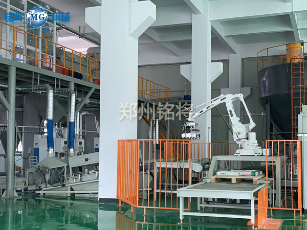 蘇州鴻川建筑材料有限公司全自動干粉砂漿生產線、自動包裝輸送碼垛生產線由鄭州銘將承建。本套生產線與其它生產線不同的是采用了氣體輸送,另外增添了自動輸送和碼垛系統。